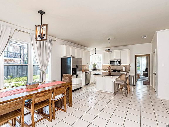 Great location near LSU and downtown Baton Rouge! This lovely 4 bed 2 bath home in Riverbend Landing has a Brand New Roof, engineered wood flooring (no carpet), 9 ft tall ceilings, an updated master bathroom, and plenty of yard space that is fully fenced and includes an electrical gate for extra security. The kitchen features granite countertops, a travertine stone backsplash, a recently installed sink faucet, tons of natural lighting, stainless steel appliances (refrigerator included), undermount cabinet lighting, and a butler's pantry with additional glass front cabinets and a granite countertop. The breakfast area is very large and allows the formal dining room to be utilized as a playroom or office. The spacious living area has a gas fireplace with floor to ceiling built-ins. The large master suite is complete with separate walk-in closets and the bathroom has been updated with new lighting, faucets, hardware, paint, and mirrors. The 3 guest bedrooms are spacious and conveniently located near the guest bathroom complete with a granite counter and double sinks. The spacious laundry room has additional storage and washer and dryer are included in sale. The covered back patio is a good size for an outdoor living area and opens up to the carport allowing for extra space for entertaining. The backyard is spacious yet easy to maintain. Backyard Playset and additional Storage Shed, Refrigerator, Washer and Dryer, and Mounts for tvs included, TVs NOT included in sale.