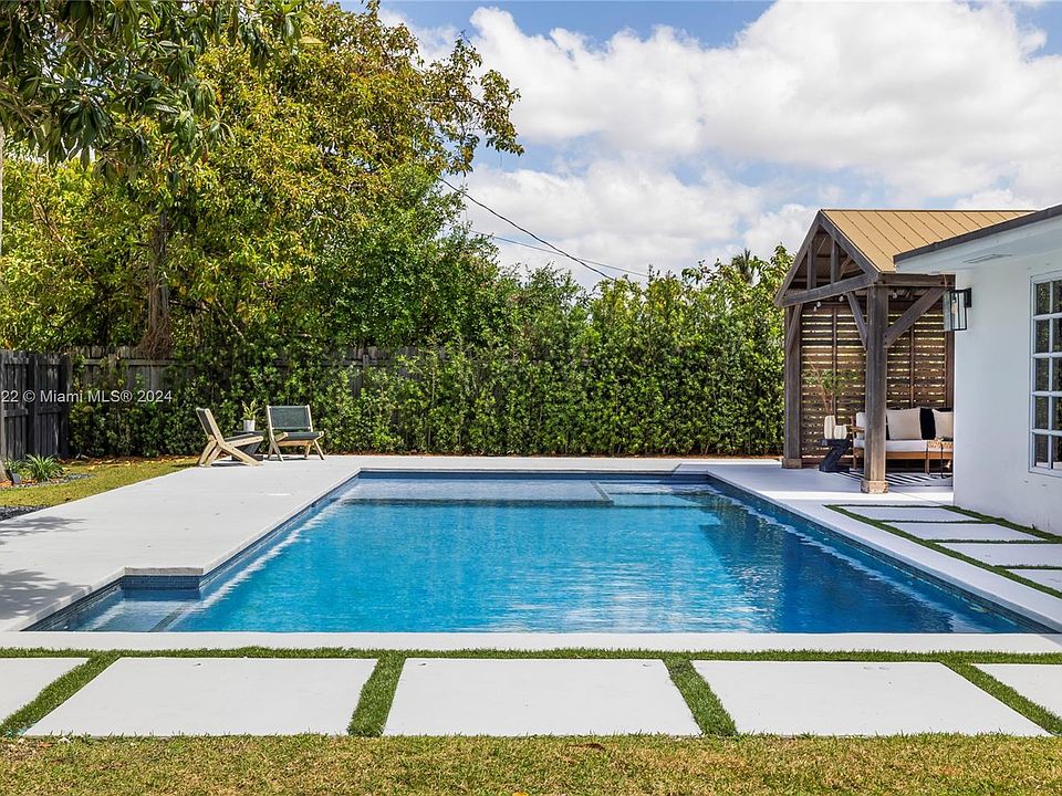 Discover a rare gem in South Miami, boasting a turn-key property in a coveted location boasting direct access to the future Ludlum trail. This modern 3-bed, 2-bath home features new oak hardwood flooring & a stunning kitchen with quartz countertops. Enjoy your private oasis with a new pool, sun shelf, & manicured landscaping. With 1,711 sqft of living space, the home offers an open layout, wood floors, & a chic kitchen with Calacatta quartz counters. The large Master Bedroom includes an oversized bathroom & walk-in closet. Both guest rooms are a great size share a tastefully remodeled bathroom. The backyard features a modern pool, wood pergola, & ample grass area. Situated on a quiet street with Ludlam Trail nearby, & just blocks from South Miami, Coral Gables, Dadeland & the 826.