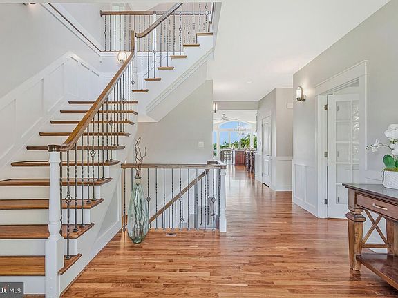 BIG PRICE IMPROVEMENT!! ** PREPARE TO BE CAPTIVATED BY SWEEPING VIEWS of the Chesapeake Bay, where the sun rises over the horizon, boats drift across the water, and the Eastern Shore shimmers in the distance. This extraordinary custom-built home offers more than 6,700 square feet of luxurious living space, thoughtfully designed for comfort with a FIRST FLOOR PRIMARY SUITE , casual elegance, and energy efficiency. FULLY-OWNED SOLAR PANELS and five Tesla PowerWalls keep energy costs remarkably low, while the private 1.3-acre setting—tucked at the end of a quiet road within an enclave of three other luxury homes—provides peace, seclusion, and preserved wooded surroundings. ** Step inside to a grand foyer with authentic WALNUT HARDWOOD FLOORS, craftsman-style custom millwork, and an elegant staircase. The SPACIOUS GREAT ROOM showcases a SOARING COFFERED CEILING, clerestory windows, and a cozy wood stove. ** For those who love to cook and entertain, the GOURMET KITCHEN boasts extensive cherry cabinetry, a large ISLAND WITH SEATING, a GIANT-SIZED PANTRY, and PREMIUM APPLIANCES, including dual refrigerators, double ovens, and a six-burner gas cooktop. The adjoining dining room is framed by UNFORGETTABLE BAY VIEWS through a wall of windows rising to the vaulted ceiling. ** Indoor-outdoor living comes easy with a SCREENED PORCH designed to serve as an outdoor kitchen, plus an all-season SUNROOM and adjacent DECK--all offering different vantage points to enjoy the views. ** The main-level PRIMARY SUITE is a true retreat, opening directly to the sunroom and bay views. Its spa-like bath features dual vanities, a large walk-in shower, and an oversized DRESSING-ROOM CLOSET, while a second walk-in closet and super-sized laundry room complete the primary wing. ** A flexible HOME OFFICE with a closet could also serve as another first-floor bedroom. ** Additional highlights include a mudroom/drop-zone with built-in storage and access to the over-sized three-car garage, which has two EV charging ports and high ceilings that can accomodate a lift and abundant storage. ** Upstairs, a LOFT overlooks the foyer, and THREE ADDITIONAL BEDROOMS—ALL WITH BAY VIEWS—share a beautifully appointed bath. ** The lower level expands the living space with YET ANOTHER BEDROOM, full bath, SEVERAL RECREATION ROOMS, THEATER ROOM, wine cellar, and storage. An EXPANSIVE semi-finished room, with large windows and level-walkout doors, is ideal for a gym, studio, or workshop. ** Outside, along with the views, you'll enjoy the lush landscaping, a koi pond with waterfall, patio, irrigation system, and large garden shed ** For those seeking more acreage, the ADJACENT 1.18-acre CLEARED AND BUILDABLE LOT IS ALSO AVAILABLE FOR PURCHASE. ** Located in Huntingtown with TOP-RATED SCHOOLS and an easy commute to D.C. and Annapolis, this one-of-a-kind property offers breathtaking views, refined finishes, and unmatched energy efficiency—an exceptional retreat to call home. (Note: some photos have been virtually staged.)