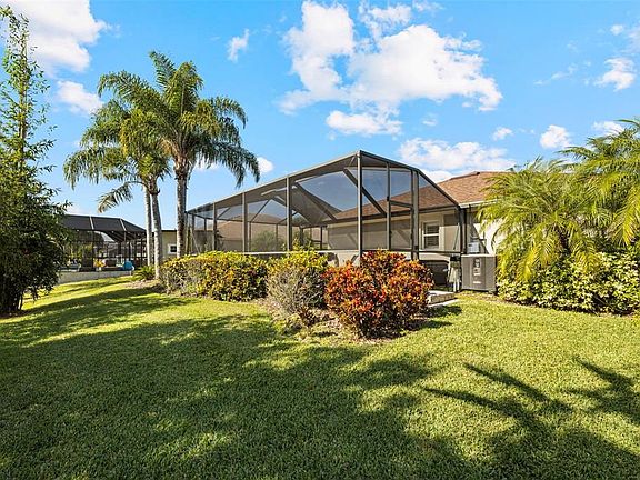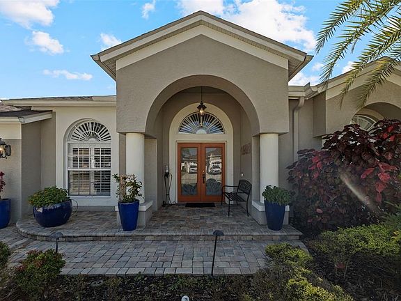Experience luxury living in the highly desired Lexington Oaks golfing neighborhood. This stunning four-bedroom, three-bath, two-car garage POOL/SPA home is a true Florida gem! Boasting breathtaking views of the 7th fairway and serene pond vistas, this home perfectly blends elegance, comfort, and functionality. Step through the double French doors into a bright and airy foyer that leads to a dedicated den, then flows through the foyer, seamlessly into the formal living and dining areas, ideal for entertaining. Beautiful crown molding and plantation shutters enhance the home's aesthetic. The spacious Primary Suite at the front of the home features sliding glass doors with direct views of the pool, plus an expansive ensuite bath complete with a walk-in closet, garden tub, walk-in shower, dual sinks, and a private water closet. The open-concept kitchen is a chef's dream, offering ample cabinetry, a prep island, and a cozy breakfast nook with French glass doors leading to the outdoor living space. Just off the kitchen is the CUSTOM BUILT laundry room . Adjacent to the kitchen, the generous family room provides the perfect spot for relaxation and gatherings. This thoughtfully designed split-bedroom layout includes two additional bedrooms that share a full bath, plus a private guest/in-law suite at the back of the home with a convenient pool bath! Step outside to your own Florida oasis! The screened lanai overlooks a sparkling in-ground pool with a spa. A paved entertainment area provides the perfect setting to relax with friends and family while enjoying serene pond views. The home has the following updates for peace of mind: ROOF (2021); Pool Enclosure (2025). Beyond your beautiful home, Lexington Oaks offers top-tier amenities, including a pay-as-you-go 18-hole golf course, a clubhouse, Oman's Bar & Grille, daycare centers, a heated outdoor pool, a splash pad, a playground, soccer, tennis & basketball courts, a Community Center, and a gym. Conveniently located near I-75, top-rated schools, hospitals, shopping, and dining, this home has everything you need and more—schedule your showing today and make it yours!