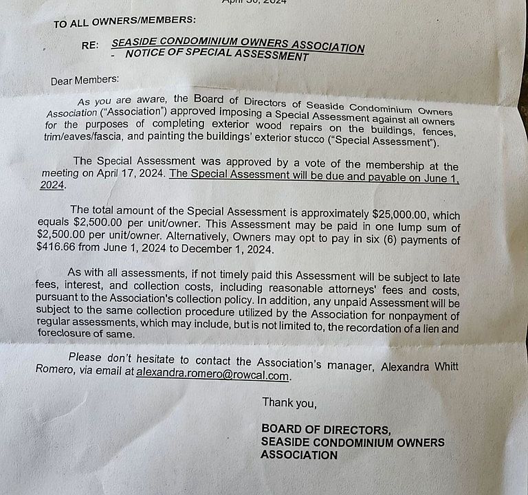 - Association name: Seaside Condominium Owners Association