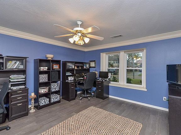WOW! This is the home for you! Beautiful trees surround this gorgeously updated home with pool!!! No detail was spared in the brand new master bath and recently updated kitchen! New wood flooring in dining room and study. The grand 2 story living room has floor to ceiling windows that look out to the amazing pool with rock waterfall. Two staircases lead you to 3 bedrooms, 2 full baths and a large gameroom upstairs. Other updates include argon filled insulated windows, new wood flooring, light fixtures, travertine fireplace, water heater and paint. Plenty of storage space here with large walk in closets, walk in floored attic and built in cabinets on both floors! Guests will love being entertained with the 2 bars, updated intercom system to play music with phone, ipod or radio throughout the house and patio, covered patio and built in basketball hoop! Come see it today! NO FLOODING! See upgrade list