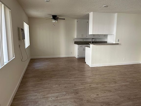 The unit is painted in designer colors, and features wood floors, ceiling fans and oversized windows. There is gated covered parking, on site laundry and a swimming pool.