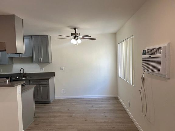 The unit is painted in designer colors, and features wood floors, ceiling fans and oversized windows. There is gated covered parking, on site laundry and a swimming pool.