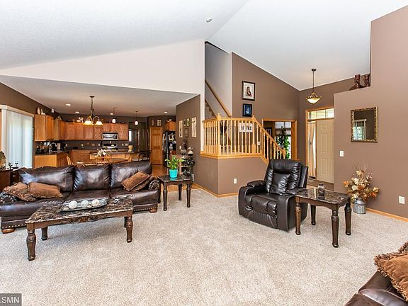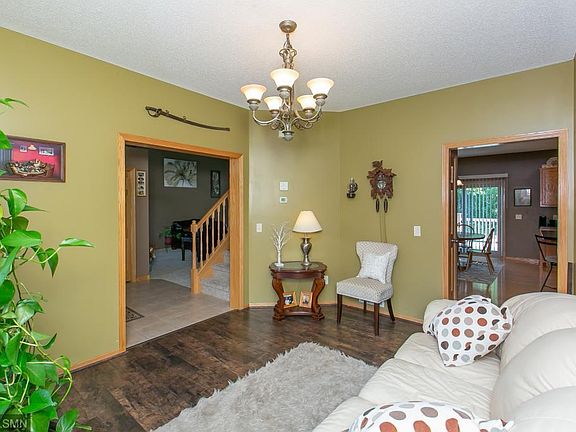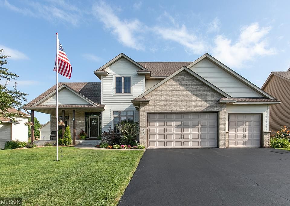 A newly installed heater keeps the vehicles warm in our cold Minnesota winters and a fireplace in the great room heats up the toes! Summer months can be enjoyed on the 20x12 maintenance free deck by the fenced-in yard or on the covered front porch as you gaze out at the lush landscaping. Wood flooring meanders through the large kitchen with a big center island, stainless steel appliances, walk-in pantry, and flows into the casual dining space. French doors open to the master retreat with its own private bath complete with dual sinks in the vanity and a jetted tub to relax the day's stresses away.