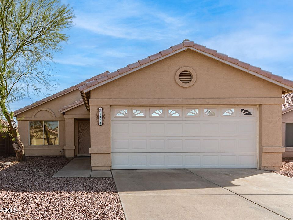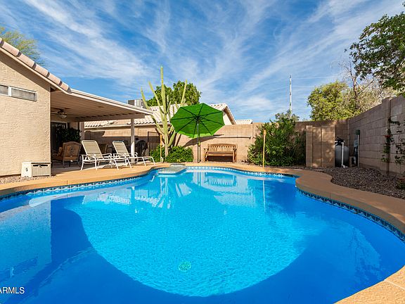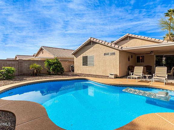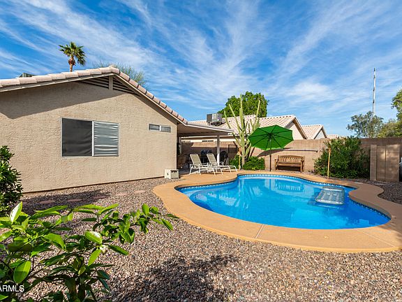Looking for the perfect place to call home? You've found it! Check out this charming 3-bedroom property nestled in the Stonecrest Community. Discover a welcoming interior showcasing BRAND NEW wood-look tile flooring and baseboards, neutral color palette, and sliding glass doors opening to the back patio. The impeccable kitchen boasts beautiful solid wood cabinetry, adorned with crown moulding and pull-out shelves, sleek granite counters, a chic mosaic backsplash, stainless steel appliances, and recessed lighting. The main bedroom offers soft carpet, a private bathroom, and a walk-in closet. All new doors & hardware, including Front. Host memorable gatherings in the wonderful backyard, featuring a covered patio & sparkling swimming pool with no neighbors behind! Don't miss out on this one