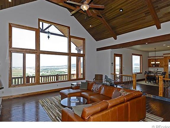 OPEN HOUSE, SAT, MAY 7TH, 1-4 PM. Instant Equity! Appraised @ $1.1M! Stunning custom ranch walk-out perfectly situated on 17.46 acres w/approx. 6,706 FSF w/4 bedrooms & 5 baths. Every detail in this gorgeous manor home was planned to perfection. From the heated driveway to the unsurpassed craftsmanship of the exposed timber trusses & 2 water falls that accent the vaulted great room, to the remarkable hand scraped red oak hardwood floors, this home is true beauty & function! The towering windows afford the ultimate awe-inspiring panoramic views of Perry Park Country Club & the Plum Creek Valley. A chef???s dream kitchen features custom Knotty Alder cabinets, slab granite, butler???s pantry, warming drawer, Sub-Zero fridge, Wolf double ovens, desk area & spacious nook. Top quality finishes continue throughout the walk-out lower level with an expansive rec room/family room, wet bar & a 500 SF theatre w/stadium seating. Near golf course, bike/hiking trails, horse stables & Pike Nat'l Forest.