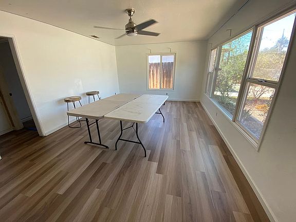 Features a large newly renovated kitchen, a spacious living room with great window view, plus a long wide drive way towards a large detached garage. This home usually rents to 5 or 6 people.