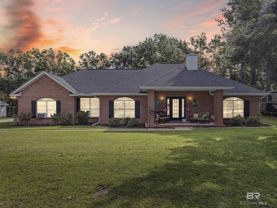 Well cared for home in Glenshire. A private area tucked away in the town of Loxley. Brick home on a half acre lot with undeveloped land behind for privacy as you sit on the beautifully pavered patio to relax. Recently added metal 30x30 out building with A/C unit and plumbed for a half bath, with a storm-rated garage door, a workbench, and able to accommodate vehicles. Home itself has an oversized 24x24 garage, gutters and flood lights. Fortified roof installed in 2021, HVAC in 2019, and water heater added this year. The living room has a fireplace, bookshelves, wood flooring and there is a separate dining room, and a 10x10 office area. Kitchen has granite, touch faucet, water filter under sink, breakfast bar, tile and breakfast area. Primary bedroom has wood flooring, a nice sitting area, and the en-suite has a garden tub, separate shower, and two sinks, second bath has granite countertops. No HOA. Come see this unique home today! Buyer to verify all information during due diligence.