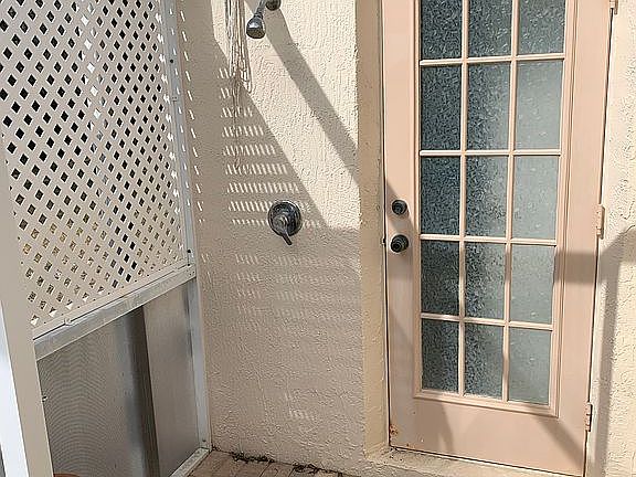 Brick Paver driveway and pool deck, fantastic palm trees, outside pool shower, split bedroom plan, large covered Patio, double door entry.