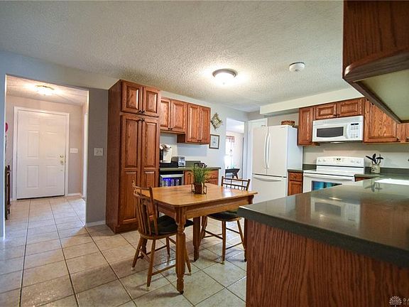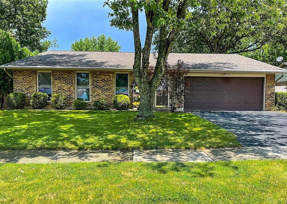 Fabulous full brick Cascade Ranch in Huber Heights with split floor plan! 3 bedrooms and 2 full baths. So very well maintained with lovely curb appeal. Entry has ceramic flooring that leads to the eat-in kitchen. Formal living & dining rooms; step down living room. Updated kitchen offering dark Oak cabinets, smooth top range, refrigerator, wine refrigerator, dishwasher, microwave & disposal; Corian kitchen counter tops, 2 pantries, self-closure drawers and breakfast counter opening to the spacious family room. Separate laundry room offers washer and dryer. Master suite has walk in closet with shelving; French doors that lead to your private bath with newer vanity that has 1 piece Corian sink and top, ceramic flooring and separate room for commode and large shower. Opposite side of the home offers 2 bedrooms and hall bath with updated vanity with granite top, tiled wall tub & shower. Linen closet in hallway. Great room leads to covered paver patio, beautifully landscaped backyard with flower and vegetable gardens and rebuilt shed (leaving 2 year old lawnmower and lawn equipment). Other features: water heater 2021, dimensional shingled roof 2014, radon mitigated, paddle fan, plenty of faux blinds, nice 2 car attached garage has opener, pull down attic access to some floored attic area. Service door from exterior to garage. Wont last long!