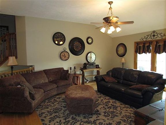 Warm and inviting all brick home with stone accents. Inside you're greeted by beautiful hardwood flooring and a soothing palette of neutral colors. The living room features hardwood floors, tall ceilings and a designer fan. The kitchen is fantastic with beautiful custom alder cabinetry, stainless steel appliances, granite countertops with slate backsplash, hardwood floors and a breakfast nook with bay windows. The laundry room is large and has slate tile floors. There is also a formal dining room with hardwood floors. The master suite is quite spacious with the bath offering his/her sinks with custom cabinetry and two walk-in closets as well as a jetted tub and walk-in shower. The fully finished walkout basement features a family room with a gas fireplace, two more bedrooms, a full bath and storage. Other features include a large deck, a patio, an in-ground sprinkler system, a floored attic space with extra lighting, insulated crawl space, a 3-car garage with 12 additional 110 outlets and one 220 outlet and much more!