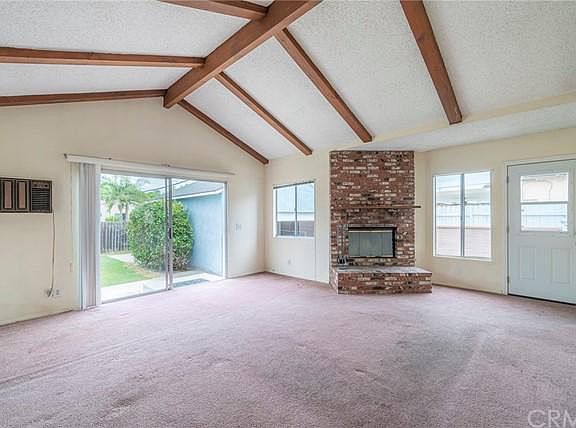 This 3 bedroom 2 bathroom home sits on a tree-lined street. There is a huge window that overlooks the porch off the living room. Lots of natural light throughout this approx. 1,715 square foot home. There is a dining area that faces the open kitchen with pantry as well as a separate laundry room. A large family room with a gas burning brick fireplace and wood beam cathedral ceilings face the backyard. The large primary bedroom is toward the back of the house with it's own bathroom and walk-in closet. There are two other bedrooms and a second bathroom with tub and separate shower. The owner states there are hardwood floors under the carpet. Lots of storage,2 car garage, long driveway and private grass backyard with lemon tree.