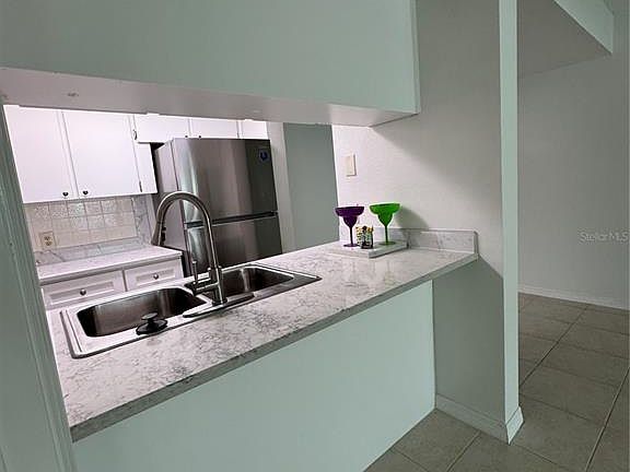 This one bedroom one bath has been redone since the hurricane and is updated with new cabinets, appliances, and new baths. Tile flooring throughout and lanai with walk in closet, newer windows and freshly painted. Nice quartz counters in the kitchen with new stainless appliances. Convenient location close to shopping and restaurants right off HW 19. Lots of waterfront restaurants close by.