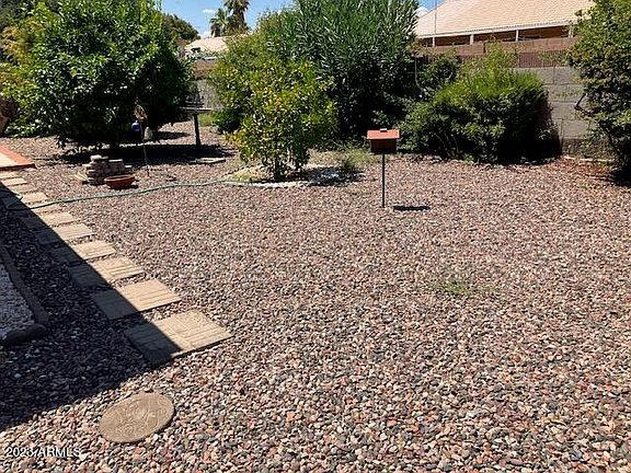 Nice private treed back yard with citrus &, pomegranate trees. There is block fencing on all three sides!