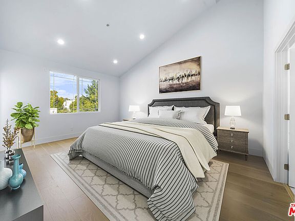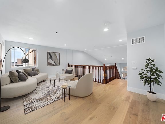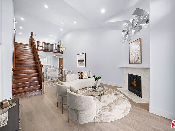 Welcome to this stunning 3-bedroom, 2-bathroom corner penthouse, perfectly situated near the historic charm of Larchmont Village. Offering unrivaled privacy and a quiet, corner position, this home showcases sweeping views of the iconic Hollywood Sign and Griffith Observatory. Upon entry, you're greeted by soaring 20+ ft ceilings and a magnificent arched window that floods the living space with natural light, creating an inviting atmosphere of openness and elegance. Thoughtful details, including new hardwood floors and recessed lighting, seamlessly tie together the spacious open-concept layout. Step through the large glass doors to your private balcony - perfect for unwinding or enjoying panoramic cityscapes. The beautifully designed kitchen is a chef's dream, featuring European marble countertops and backsplash, glass-front cabinetry, and new stainless steel appliances, including a sink, dishwasher, oven, and refrigerator. Whether cooking for family or entertaining friends, this kitchen is as functional as it is stylish. The primary suite impresses with its lofty ceilings, a private balcony entrance, and an en-suite bath featuring a luxurious soaking tub, walk-in shower, and a generous walk-in closet. Two additional bedrooms offer comfortable spaces with ample storage, perfect for guests, home offices, or creative spaces. Head upstairs to discover a versatile loft-style den - perfect for a home office, creative studio, or entertainment area. This space flows effortlessly to the private rooftop deck adorned with new Italian tiles, where breathtaking sweeping views of the city await. Whether hosting intimate gatherings or savoring peaceful evenings, this rooftop retreat is sure to elevate your lifestyle. Additional highlights include custom-built oak stairs, an elegant statement chandelier, a cozy fireplace, a brand-new washer and dryer, and two secure tandem parking spaces. Enjoy peace of mind with controlled building access and an all-inclusive HOA covering trash, water, insurance, and building maintenance. Nestled just south of Melrose Avenue, you're minutes from world-class dining, trendy boutiques, and entertainment hotspots. The nearby charm of Larchmont Village adds a touch of classic Los Angeles living to your vibrant, modern lifestyle. This penthouse is more than a home - it's a tranquil retreat in the heart of the city, offering the perfect blend of luxury, convenience, and unmatched views!