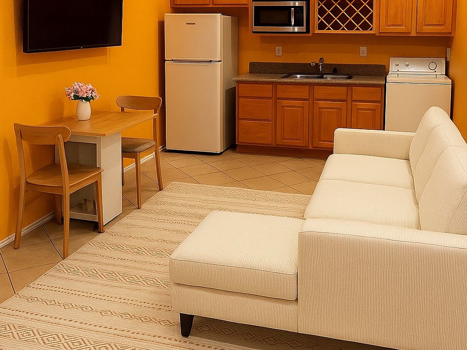 Great neighborhood walking distance to restaurants, USPS, library, and shopping mall. Quiet neighborhood. Not a party home. Very safe environment. Bright and open studio located behind the main house, featuring high ceilings, sliding glass doors, and tiled floors. The space includes a new bathroom vanity and in-unit washer and dryer. Semi-furnished (can be cleared upon request). The entrance is from the side of the house and the unit is in the far back tucked away in it's own corner providing ample privacy like many guest homes. The kitchenette setup does not include a built-in stove, but electric stoves are allowed. Enjoy a large yard with guava and pomegranate trees perfect for gardening, relaxing outdoors, or a BBQ. No garage access. This studio offers the perfect blend of privacy, comfort, and natural light. Some listing photos may be AI-enhanced for visualization purposes. Lease Terms Private Studio Rent: 2100 Deposit: Equal to one month's rent Move-in Costs: First month's rent + deposit + last month's rent Utilities: Included (water, power, gas, trash) Lease Term: 1 year minimum Unit Features: Furnished studio with queen bed, desk, closet, kitchenette (fridge, sink, microwave), in-unit washer/dryer.