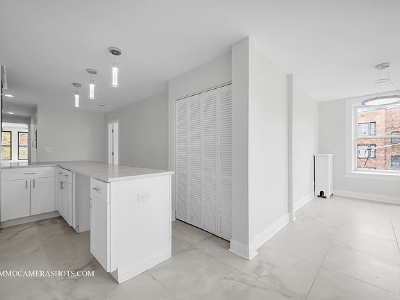 Renovated 3beds/2baths 2nd Fl walk up in Hyde Park/Kenwood area w/high ceilings! Over 1300 square ft! -- 3 large bedrooms, 2 full bathrooms. Beautiful white kitchen with granite counters, new SS fridge and range, refinished hardwood floors throughout. Great space for dining table w/plenty of windows providing wonderful natural light throughout the unit! Large open floor plan with updated bathrooms. Sunny front room great for entertaining w/ in unit washer/dryer. Easy access to highway, public transit a short walk away. Enjoy fun and lively area w/ great new restaurants, bars and coffee shops. Long term lease will receive monthly discount...don't miss this rental opportunity!
