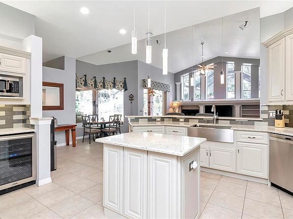 This home has it all — location, layout, upgrades, and lifestyle. Step inside this beautifully maintained 4-bedroom, 3-bath pool home with a private office and bonus room, perfectly set within the coveted community of Twin Lakes in Valrico. From its thoughtful multi-generational design to its modern finishes and serene outdoor living spaces, this home is the total package — elegant, functional, and move-in ready. The light-filled interior welcomes you with soaring vaulted ceilings, open-concept living spaces, and timeless design elements throughout. A formal dining room with a picture window flows into the spacious family room, anchored by a custom gas fireplace and illuminated by recessed lighting. Glass sliders open to a covered lanai and sparkling screened pool, creating the ultimate indoor-outdoor living experience. At the heart of the home, the fully remodeled kitchen stuns with quartz countertops, seamless cabinetry, and crown molding detail. An oversized island with pendant lighting, tile backsplash, and built-in wine rack blend everyday comfort with showpiece sophistication. The breakfast nook overlooks the pool and tropical landscaping, offering the perfect morning view. The luxurious primary suite delivers space and serenity with a tray ceiling, and luxury vinyl plank flooring. The ensuite bath features dual vanities, quartz counters, garden tub, walk-in shower, and two generous walk-in closets. A thoughtfully separated guest suite with private bath and pocket-door access offers privacy for in-laws or extended stays. Two additional bedrooms share a Jack-and-Jill bath, each with ceiling fans, blinds, and built-in closets. A versatile den with double doors makes for the ideal home office or study. A large bonus room provides flexible living — perfect for a media room, gym, or play space — complete with sliding doors to a private balcony overlooking the pool. All bathrooms feature updated quartz countertops, neutral tile flooring, and stylish hardware. Step outside to a backyard retreat designed for entertaining. The screened-in lanai, resurfaced pool, and extended outdoor living area is already plumbed for an outdoor kitchen and features BOSE speakers surround sound to provide relaxation year-round. The fenced yard is surrounded by lush tropical landscaping, offering privacy and beauty in equal measure. A three-car garage with cabinetry, workbench, and utility sink adds valuable storage and convenience. Every major system has been meticulously cared for: roof (2011), two A/C units (Lenox and Ruud), water heater (2019), tankless water system (2025), saltwater pool system, reclaimed-water irrigation, and surround sound wiring throughout the home. Located in the prestigious community of Twin Lakes, residents enjoy scenic lakes, walking trails shaded by majestic oaks, and resort-style amenities including a community pool, tennis courts, and playground. This Valrico gem offers the perfect balance of tranquility and accessibility — minutes from shopping, dining, golf courses, top-rated schools, and commuter routes to Tampa, Brandon, and Riverview. Discover the home that truly has it all — a combination of craftsmanship, comfort, and community that defines Twin Lakes living.