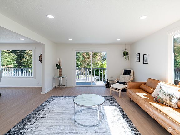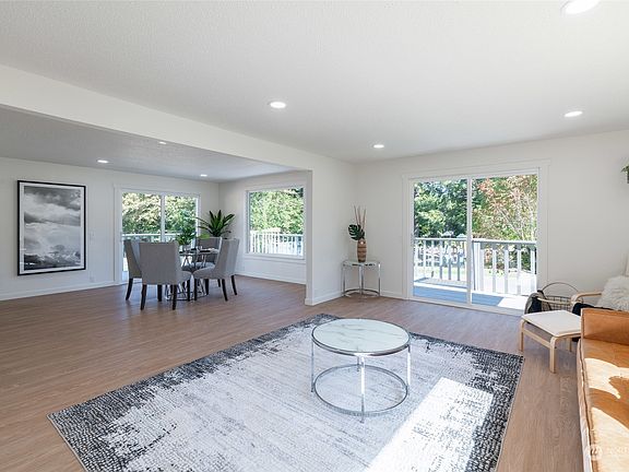 Completely renovated home in Beachcrest! Welcome to this 2-bed, 2-bath home with an additional room that could potentially be an additional bedroom. This corner-lot home features an RV shop and has been completely updated with fresh interior and exterior paint, LVP flooring, a custom metal roof, new sheetrock and millwork, black interior doors, and a remodeled kitchen and bathrooms with quartz countertops. The spacious layout includes a large living room, dining room, kitchen, bonus room with a dry bar, game room, and a generous deck, perfect for entertaining. The fenced property includes a workshop. Enjoy a private South Sound community with access to a beach, marina, boat ramp, nature trails, park, and more!