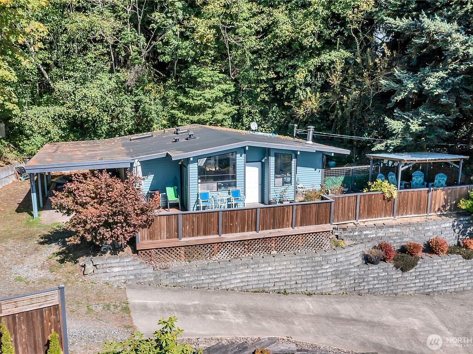 Charming Wollochet Bay Home in the desirable Cromwell area. Southern exposure provides a breathtaking view of Puget Sound at all times of the day. This 2 bedroom, 1 bathroom home is equipped with an open concept layout that allows a seamless flow of the living, dining, and kitchen spaces perfect for entertaining! Right outside your doorstep is access to your oversized deck and gazebo area. Enjoy the coastal lifestyle with easy access to a public boat launch and beaches just moments away. Conveniently located 10 minutes from shopping, freeway access and restaurants. House needs TLC, bring your finishing touches!