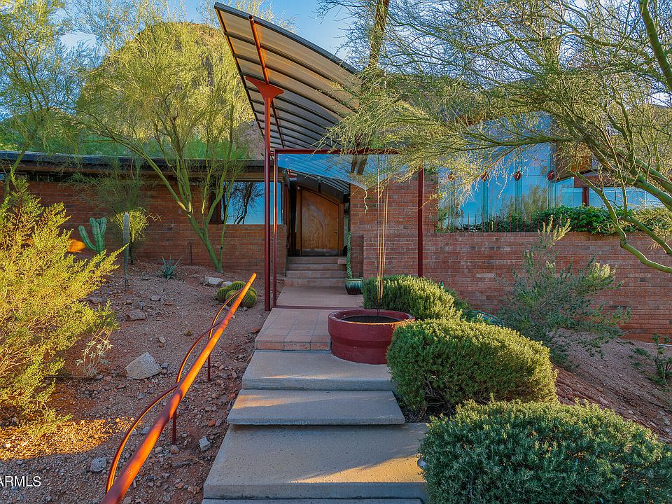 There are so few homes remaining that represent the "Arizona School" of Desert Modern Architecture other than the Halas House designed by Award-winning, "Master of the Southwest" Architect Eddie Jones, FAIA. Immaculately kept by the original family, this home is being offered for the first time ever. Featured in many publications, this award-winning home nestles into its Camelback Mountain hillside site offering a quiet, yet expressive design well integrated into nature, with commanding views of Paradise Valley. The home offers brick masonry and copper construction, simply amazing detailing and custom steel elements. Soaring ceilings make the volumes feel more spacious and the full height glass walls bring the views and outdoors in. Not a single detail was overlooked in this custom home. The main ceilings feature a half barrel vault in redwood while the custom millwork is outfitted in white oak. Open kitchen offers a plethora of storage and wonderful natural light, a gift from the round skylight details found throughout this home.