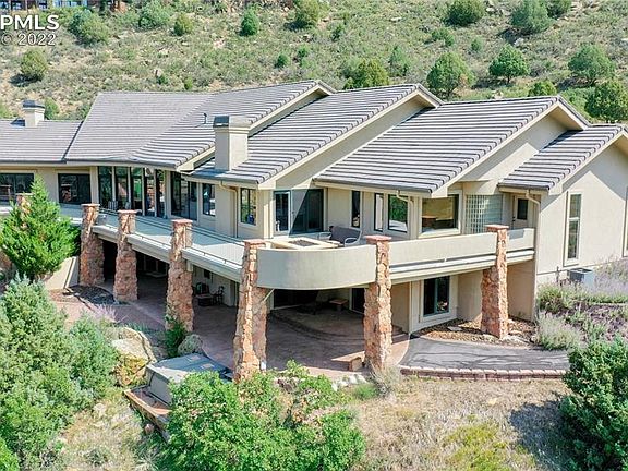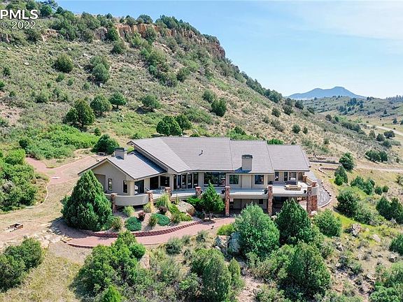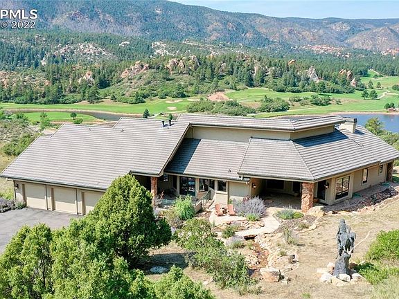 Looking for a corporate retreat or a vacation rental home or your forever home?  This is YOUR chance to own the most premier location gated custom estate on 10 acres sitting high on a hill in prestigious Perry Park with unbelievable panoramic views of the golf course, red rock formations and Lake Wauconda. You'll love spending evenings on the almost 3,000 square foot deck watching the incredible sunsets and you will fall in love with watching the wildlife from your very large backyard. Enter through the front door and leave the everyday behind. This is a place to relax, unwind & indulge in luxury. The open & airy floor plan has plenty of natural light with views from every window & it is perfect for gatherings of all sizes. The gourmet kitchen is a chef's dream with cherry cabinets, slab granite, large pantry, veggie sink, breakfast nook & hearth room with fireplace. With 5 bedrooms & 6 bathrooms, a main level home office that opens to the deck, 4 indoor fireplaces & plenty of living space, there's room for everyone in this ranch with walk-out floor plan with approximately 6,147 FSF. Plus, this home features top-of-the-line finishes & appliances that are sure to impress. Not 1, but 2 main floor primary suites offer options for a true in home getaway/retreat; enjoy stunning views while cozying up to the fireplace & each has a luxurious bathroom (1 has a steam shower) and huge walk-in custom closets. The lower level offers a wine cellar, wet bar with custom Beachwood counter top, family room and 3 of the bedrooms (1 is currently used as home gym) & 2 more bathrooms. The outdoor recreation possibilities are unrivaled and include 5 golf practice hitting mats for driving/pitching, a horseshoe court, water feature & 3 outdoor fire pits. There are 2 outdoor statues including a "14ft Remington Mountain Man" & 3 additional lighted areas for statues to add your own panache. Zoned for horses. Don't miss out on this one-of-a-kind opportunity!