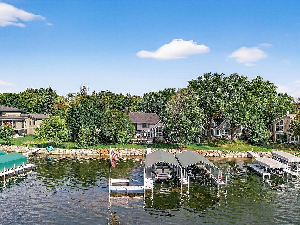 Introducing 5133 Emerald Drive on Lake Minnetonka’s coveted “Gold Coast” of Cooks Bay. This stunning property boasts .47 acres with 106 ft of premium, south-facing, level lakeshore. Enjoy big-water views and year-round sunsets. Completely renovated inside and out by Custom One Homes (2023) for the interiors and by Denali custom homes & NEC Landscaping (2022) for the exterior; this home is like brand new construction! Spanning over 3,700 square feet, the residence offers 5 bedrooms and 4 bathrooms. The main level showcases a wall of windows framing breathtaking lake views, luxurious primary suite, gourmet kitchen, wet bar, private office, sunroom, family room, opening to an oversized deck and patio. Upstairs, you’ll find four additional bedrooms, a second laundry area, and a second primary suite, ideal for guests or multi-generational living. Located in the award winning Westonka school district.
