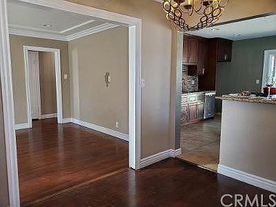 Welcome - Come on in!! Must see to appreciate this lovely home. Huge Gorgeous Kitchen: Highly upgraded chef's kitchen is an entertainer's delight. Lovely granite countertops compliment the dark walnut cabinetry. Center island with Jenn-Air gas range and oven and great work area. And oodles of storage. So much natural light from windows and slider to backyard plus recessed lighting. Assessor's info shows 4 bedrooms but office has no closet. Family room features slider to backyard, bath and could be used as a Fabulous Retreat (or separate in-law quarters). Hardwood floors, ceiling fans, inside laundry room, travertine shower, glass sheer surround in the second bathroom, elegant crown molding, coffered ceiling, recessed lights, newer dual pane windows and shutters, central a/c and heat are just a few additional features. Oversized lot (50x135 or 6750 square feet per Assessor info) provides ample space for the two car detached garage plus oversized workshop and space to relax and enjoy the Southern California weather. The gated driveway and block wall fence surrounding the property provides additional privacy.