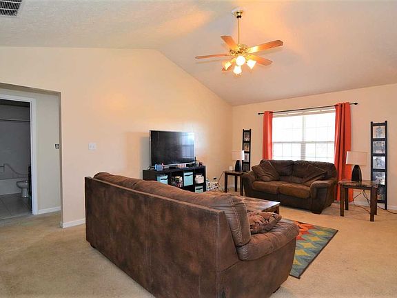 Looking for a lake lot? Don't miss your opportunity to pick up this property for your home! Stepping through the front door of this 3 bedroom home, a foyer entry welcomes guests in. The living room offers a cathedral ceiling, and has a water view of the lake out back. The open floorplan includes an adjacent dining space and kitchen, a perfect layout for entertaining friends or family. The kitchen comes fully equipped with included appliances, which includes a brand-new microwave and a door off the dining area opens to a covered patio at the back of the home. The owner's suite offers a trey ceiling, walk-in closet, and full en suite bath. The additional bedrooms have good closet space. Much of the home has fresh paint throughout, and the seller is offering a $3,000 flooring allowance, payable to the vendor of the buyer's choice to replace the carpet.