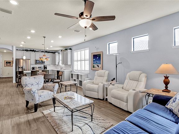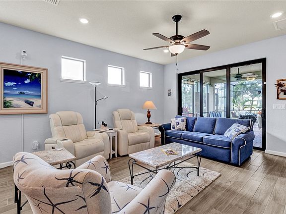 Immaculate 2021 Ellenwood Villa within The Lakes at Waterway Village, this 1,579 sq. ft. Ellenwood Villa combines modern comfort with stylish upgrades. With 3 bedrooms, 2 bathrooms, and an open floor plan, this home offers both elegance and functionality. The backyard has both lake and open space views. Improvements include a 700+ sqft paver/screened enclosure and side and rear yards enclosed with 4' fence. The open floor plan has split bedrooms, porcelain plank flooring throughout with Impact windows and rear sliding doors.