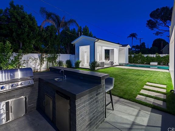 Stunning new modern farmhouse in prime Encino neighborhood designed by Eran and Nathalie Gispan of NE Designs. Manicured landscaping invites guests to a formal foyer with soaring ceilings, and European wood floors throughout. An elegant living room with large picture windows and fireplace is adjacent to a spacious dining room complete with a glass wine showcase wall. A butler's pantry connecting to the gourmet Chef's kitchen with double islands, high end stainless steel appliances, and breakfast nook. Relax with guests in the family room complete with corner sliding pocket doors perfect for indoor/outdoor living. A dedicated media room, office and courtyard complete the first floor. The romantic master suite features a fireplace, massive walk-in closet, oversized balcony, and spa-like bath with dual vanity, soaking tub, and glass shower. The Entertainers yard includes in ground pool and spa, built-in BBQ, pool cabana complete with bathroom and incredible privacy. Additional conveniences include a Control 4 Smart System, and upstairs laundry. Enjoy everything Encino has to offer with proximity to fine dining, shopping, and more.