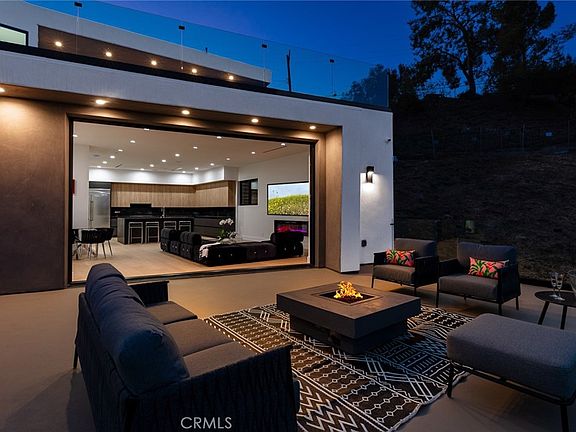 2025 NEW CONSTRUCTION VIEW HOME with jet liner views located south of the BLVD in Woodland Hills! Modern Masterpiece with over 3400 sq ft of living space with no expense spared. Impressive Architecture, sleek design ,smooth stucco modern living greets you as you pull up to this stunning view home. Enter to light filled house with windows that show case the view. State of the art kitchen ,large 8 ft island, custom cabinets, built in wine refrigerators, designer stainless steel appliances. Fireplace, open concept living with pocket doors that seamlessly blend indoor and outdoor living. Perfect for entertaining, open concept with dining area , kitchen opens up to living room and huge deck. This home offers five bedrooms, five and a half bathrooms, home theater, game room ,multiple decks and outdoor seating areas .Finished garage with direct access to home and private deck. Primary bedroom showcases like a 6 star resort with huge walk in closet. Primary bath with designer soaking tub ,step in shower and smart toilet. Office that leads to backyard with additional outdoor living space and yard. Hardwood floors, detailed lighting and built ins. This all electric property has to many upgrades and details to mention. Ultimate luxury and privacy. Home next door 5130 Medina is listed as well. Purchase one or both and create your own compound. Located near RAMS new training facility, THE VILLAGE, Topanga Social, The mall and all new hip trendy shops and restaurants. A perfect 10 bring your pickiest buyer .Perfect for investors as a rental property or Airbnb.