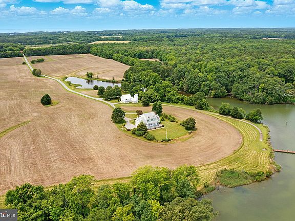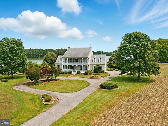 A true sportsman’s paradise and a family compound, this impressive 212 +/-acre farm offers breathtaking water views and unparalleled outdoor recreation. The solidly built, colonial style home is designed to capture the beauty of Davis Creek from nearly every room. The kitchen and dining area are perfectly positioned for waterfront entertaining, seamlessly flowing into the family room with gas fireplace and the sunroom. Expansive decks overlook the creek and the entrance to Lankford Bay. For more intimate gatherings, a formal dining room provides the perfect setting for cozy celebrations. Designed for convenience, the home features a main level en-suite bedroom and bath. Upstairs, the spacious primary suite includes an oversized closet and bathroom, accompanied by three additional guest rooms, two full bathrooms, plus an additional bedroom currently used as an office. Two of the guest bedrooms have access to the upstairs porch. There is bonus semi-finished space on the third floor. A dry basement offers ample storage. Boating enthusiasts will appreciate the multi-slip deep-water dock with 5 feet MLW, a 16,000 lb. boat lift and a jet ski lift. The property consists of three parcels. The main parcel is over 72 acres and includes the residence, barn, and outbuildings. There is an 82+ acre buildable parcel featuring a dock and a cleared buildable site with water views. The third buildable parcel is nearly 58-acres with established farmland and prime hunting grounds. The two additional parcels already have paid public sewer hook ups. Approximately 88 acres of woods. The farm is well-equipped for agriculture (111 tillable acres), premier hunting, and endless recreational opportunities. It includes a main pond, two impoundments, and rich wildlife habitat. Hunters will find the property loaded with deer, turkey, geese, and ducks. There are two, 6-man cinder block goose pits (oriented North/South and East/West) and six deer stands. This property is truly one of a kind. Whether you're looking for a private retreat, a working farm, or a premier hunting destination, this estate has it all. Schedule your private tour today!