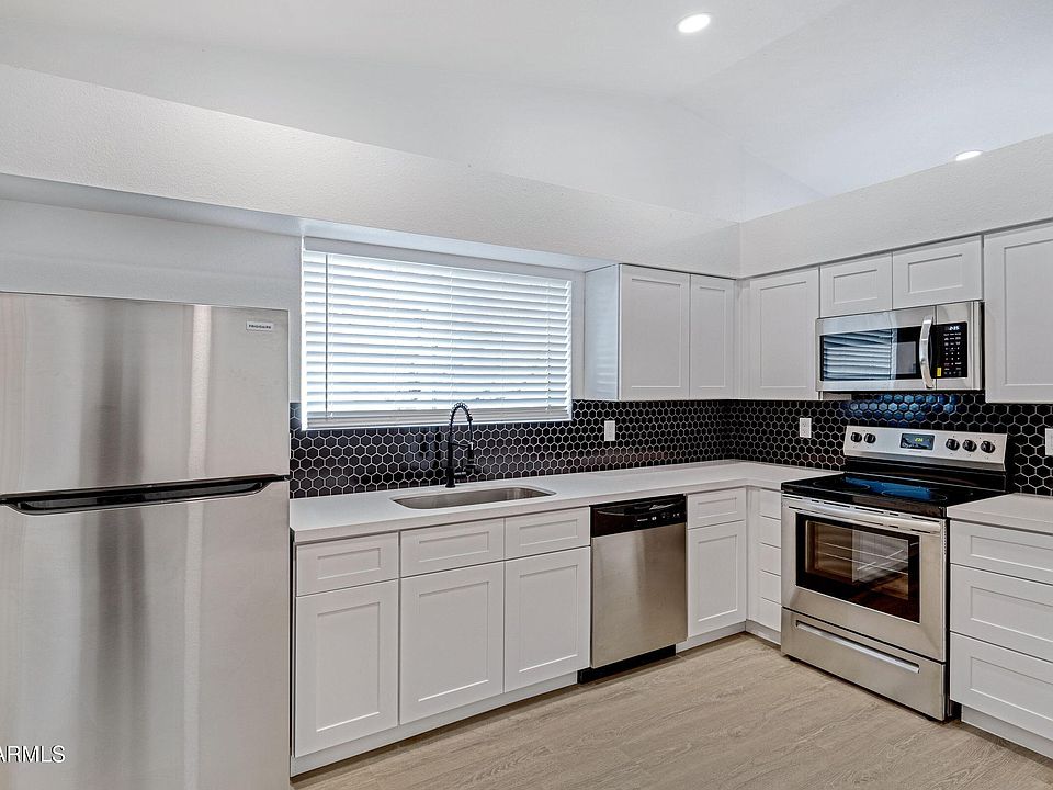This STUNNNG REMODELED 3 Bedroom, 2 bathroom has a Newer AC & features a Charming Brick Accented Façade, Vaulted Ceilings, & is located in a Community with AWESOME AMENITIES, including a Large Community Pool, a Kiddie Pool, Spa, Lots of Playground Equipment, & Many Walking & Biking Paths surrounded by Large Lush Trees. Enter this STUNNING PROPERTY and Step inside and ENJOY the Beautiful Flooring, Upgraded Baseboards, Fans, and Updated Interior overlooking the relaxing and private patio area. The Eat in Kitchen boasts all Beautiful CABINETRY, QUARTZ COUNTERTOPS, & STAINLESS-STEEL APPLIANCES! Master Suite boasts a Walk In Closet and a Private Bathroom with a Gorgeous Tiled Walk in Shower, Updated Fixtures, Hardware, & Vanity w Quartz Countertops. MUST SEE!!