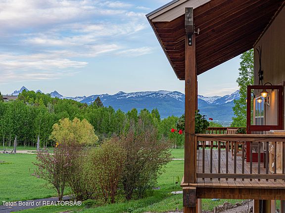 Custom Timber Frame Home- This 3-bedroom, 3-bathroom home, on 2.63-acres, features an open kitchen, dining and living room with cathedral ceilings and fireplace, perfect for relaxing and entertaining and a detached 160 sqft office/studio. A large covered deck off of the living room makes it easy to enjoy the outdoors and Teton views. Hydronic in-floor heat warms the entry saltine tiles and provides a cozy area to welcome you home. The primary suite includes in-floor heat, walk in closet, propane fireplace and abundant natural light. The upstairs loft, with the third bedroom, offers great overflow space. The lower level offers a guest suite and access an oversized garage. Two oversized garage bays supply plenty of space for your toys, as well as a 9' door for oversized vehicles.
