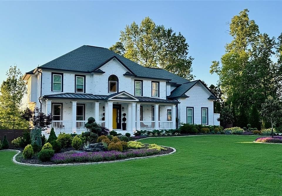PROFESSIONAL PHOTOS COMING. Welcome to this show-stopping home in the sought-after community of Ashebrooke, where modern design meets timeless elegance. Perfectly situated on a quiet cul-de-sac, this home offers unmatched curb appeal with its crisp white brick exterior, contrasting trim, vibrant yellow front door, and professionally designed landscaping feels straight out of a magazine. Step inside to discover a light-filled, open floor plan that's as stylish as it is functional with 3 floors of French oak wood and designer tile flooring. The two-story family room makes a dramatic statement with soaring ceilings, luxury lighting, and a stunning marble-stacked fireplace surrounded by large picture windows. The formal dining room features elegant wainscoting, a built-in wine bar, and capiz chandelier - perfect for hosting family gatherings or dinner parties. The living room and home office offers inviting space with beautiful natural light and modern, clean-lined design. At the heart of the home, the chef's kitchen shines with a blend of European elegance and modern functionality - featuring a 6-burner range, Bosch appliances, statuario marble counters, custom wood hood, and a navy island that adds a pop of style. The hexagon tile detail at the floor transition and open shelving bring warmth and artistry to this space. Upstairs, the owner's suite offers a true retreat - complete with a cozy sitting area, his-and-her closets, and a spa-inspired bath. Three additional spacious bedrooms each include large closets and beautiful finishes along with two fashionable full bathrooms with modern fixtures and chic tile design. The finished terrace level expands the living space with two bedrooms, a full bath with curbless shower, designer fixtures, and a hidden room tucked behind a library door - the ultimate entertaining feature. There's also a media room with recreation space, and ample storage. Step outside to enjoy your private oasis. A modern deck with under-decking creates a year-round patio experience, while the paver patio with sitting wall is perfect for fireside evenings. The Japanese-inspired conifer garden features heirloom roses, unique evergreens, a raised-bed vegetable garden, and fruit trees - all maintained effortlessly with smart Wi-Fi drip irrigation and landscape lighting. Permanent Trimlight holiday lighting adds year-round curb appeal at the touch of a button. This home is as smart as it is beautiful, equipped with whole-home Wi-Fi lighting, Nest thermostats, tankless water heater, whole-home water filtration system (2021), triple-pane solar-blocking windows (2019), and new HVAC systems with HEPA filters (2018) - giving you peace of mind and energy efficiency for years to come. Located in Ashebrooke, one of Forsyth County's most vibrant communities known for its neighborhood events, swim and tennis amenities, and festive holiday spirit. Just minutes from Big Creek Greenway, Cumming City Center, GA 400, and top-rated West Forsyth schools. Bonus: A transferable VA loan at 3% makes this home as financially smart as it is stunning.