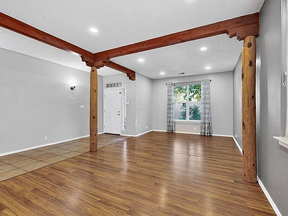 This Southwest style homes, has exposed wood beams that make an architectural statement. Warm yourself this winter by the beautiful gas Kiva fireplace. Enjoy the sunrises and sunsets while you relax on your balcony. The home has a new TPO roof 2023, refrigerated air, new Heaters and 2 new water heaters. When guest or parents visit there is a separate main level bedroom with the full bathroom right next to it. Enjoy the benefits of the solar panels during the warmer months. Storage space, workshop or an area to park your toys this garage is spacious and well laid out. Cooking will be a piece of cake this holiday season, with a double oven, gas cook top and lots of countertop space to spread out. The community has multiple parks, trails, playgrounds and a community pool.