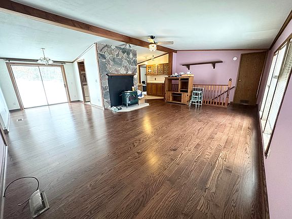 Welcome to peace and seclusion a stones throw from Lowell and Grand Rapids. This house is on a wooded lot, move in ready and has a ton of potential. There is also the ability to finish the basement for additional living space. NEW ROOF as of 2021, furnace is around 10 years old. Imagine yourself lounging around in the living room with the wood burning stove crackling in the background. Plenty of acres for chickens, pets of any sort and a garden. Drop your Kayak or boat into the Grand River at public boat access only 6 minutes away. Don't miss out on this property, as not much pops up east of Grand Rapids recently.