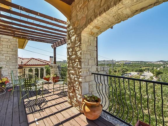 Mediterranean multilevel home with lake & hill country views. Entertainers dream, open 2nd floor feels like loft, wood floors, gourmet kitchen with granite, stainless, slate tile,multiple balconies, sport court, breath taking home!