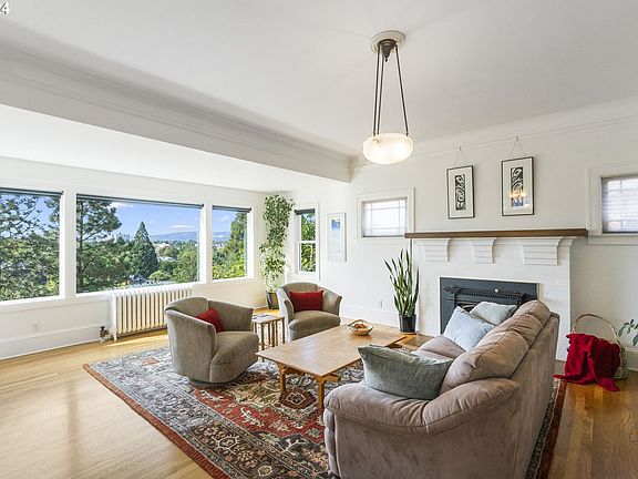 Million dollar views on Alameda Ridge! Perched high above the street, this classic Dutch Colonial will capture your heart! Current owners have cherished this home for 28 years - a testament to this wonderful neighborhood and community! Broad shouldered front porch welcomes you inside to a beautiful formal entry with open staircase. From the moment you step inside, be prepared for expansive, jaw dropping views of the city & downtown Portland! The grand sized living room offers a statement woodburning fireplace & large picture windows to take in the views! The formal dining room with built in buffet opens to a spacious deck oriented toward the views– ideal for entertaining or dining alfresco under the stars! Period details include expansive hardwood floors, picture railings and vintage light fixtures. Drenched in natural light. Remodeled open kitchen includes ample storage, granite island and a smart layout for easy meal preparation. The main floor includes a handsome office with built-ins & unpainted woodwork. Smart floorplan includes 3 bedrooms up with integrated adjacent sunroom + family room/poss 4th bedroom in the basement. True “upper” primary bedroom provides convenience, while the guest bedrooms offer flexibility to meet your changing needs. Large, charming period guest bath up including wainscotting accents and a clawfoot tub! Room to expand in the spacious basement offering ample storage, laundry, third bath, workshop & sauna! Efficient radiant heat; water heater is heated by gas boiler; owned solar system! Quiet pocket in prime location – stroll or bike along iconic Alameda to nearby Beaumont Village cafes & shops or to meander down to the historic Hollywood district to the theatre or brew pubs! [Home Energy Score = 6. HES Report at https://rpt.greenbuildingregistry.com/hes/OR10232731]