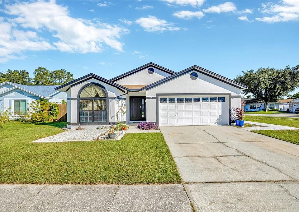 Welcome to this spacious 4-bedroom, 2-bathroom pool home, nestled on a large corner lot in a family-friendly neighborhood. With high ceilings throughout, this home feels bright and airy, offering plenty of space for both relaxation and entertaining. The recently renovated bathroom brings a fresh, modern touch, while the garage has been cleverly converted into a versatile bonus room—ideal for a playroom, office, or home gym—but can easily be restored to its original function. Seller is offering 20k at closing for New Roof and any upgrades/repairs  New Concrete Pool was put in July 2024. The A/C is 2020 with a 2024 Compressor, ensuring comfort year-round. A Water Softener was put in 2024. This home needs a little TLC, and is the perfect canvas to add your personal touches and truly make it your own! The neighborhood elementary school is just steps away, offering convenience for families, and the best part—there’s NO HOA and NO CDD!  Only 20 Minutes away from the Tarpon Springs Sponge Docks and Sunset Beach. A little Less than an hour from the Famous Clearwater Beach!! Bring your vision and make this charming home yours.