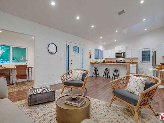 Offering classic curb appeal with its Craftsman-style exterior and inviting front porch, this beautifully remodeled bungalow is the epitome of modern elegance. Inside, the light-filled living area features vaulted ceilings and skylights, creating an airy, open feel. A cozy alcove off the living room makes the perfect home office or creative nook. The kitchen, meanwhile, comes fully equipped with stainless steel appliances, including a gas range, dishwasher, microwave, and counter-depth fridge. Bedrooms on either side of the home open to a private, fully fenced 650 SF patio and garden. Additional highlights include ample closet space, an in-unit LG washer/dryer, central heat/AC via a Nest thermostat, and stylish finishes. Situated at the front of a peaceful three-home compound just north of Colorado Blvd, this home offers easy access to all of Eagle Rock's hotspots, including Vidiots, Walt's, and Capri Club and is less than five minutes from Occidental College and the 2 and 134 freeways. Includes 1 parking space at the front of the house. Pets Ok! Owner pays for landscaping plus water & sewer.