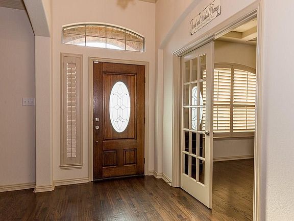 Stunning 1 story in coveted Sloan Creek Estates. Beautiful hardwood flrs greet you in entry, study, form dining, kitch, & fam room. Kitchen showcases updated granite & designer tile bksph, SS microwave & oven, gas c-top, abundant cab space & spacious brk bar. Custom touches include tray ceilings, rotunda, plan shutters, dbl sided fp, & 2nd office or craft room. Enjoy private yard backing to trees, cvrd patio, & outdoor c-fans. Buyer and Buyers Agent to verify all information.