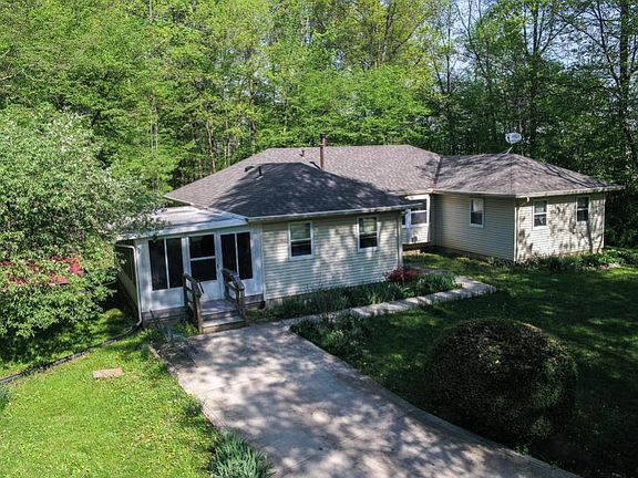 A nature lover's private retreat! Situated on over six wooded acres, the original owner used the extended lane as a runway to take flight! Buyers will appreciate the privacy afforded by living in this hidden gem. Features three bedrooms and three full baths, oversized kitchen with eat in space in addition to the dining room. Great room features wood burning stove. First floor living! Three seasons room allows for quiet enjoyment and adds 250/SF of living space. Outside, enjoy the private pond and insulated/electric quonset building that includes a workshop and concrete flooring. New roof 9/2016. Del Co water services home and a well is currently used for outdoor projects. Needs some cosmetic TLC - priced accordingly! Quick access to SR 23 and Delaware city limits. A one of a kind!