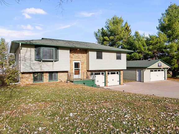 This beautifully maintained home offers an inviting blend of comfort, updates, and outdoor enjoyment. The remodeled kitchen opens to the informal dining area and features updated flooring, modern finishes, and direct access to the multi-level, maintenance-free deck - perfect for gatherings and overlooking the expansive lot and above-ground pool. The partially fenced yard adds privacy while still offering plenty of open green space. All 3 bedrooms feature fresh paint and brand-new carpet, adding a clean and comfortable feel throughout. The main-floor bathroom has convenient access from both the hallway and the primary bedroom, which includes double closets for extra storage. The finished lower level provides even more living space with daylight windows, an electric fireplace, and an updated full bath. The large rec room also has brand new carpet. Additional updates throughout the home include modern trim, doors, and lighting, along with a newer washer and dryer set that can transfer with the property. Outdoor enthusiasts will love the expansive poured-concrete driveway and the insulated, heated 40×50 outbuilding with concrete floors, 220 wiring, with oversized 18×8 and 10×8 garage doors - perfect for vehicles, hobbies, or a workshop. This outbuilding has its own Propane Tank for heating. The home has also been freshly pressure-washed for a crisp, move-in-ready appearance. Don' t miss all this property has to offer!