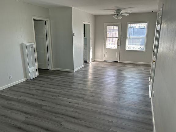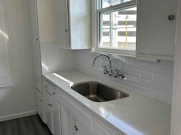 Unit features upgraded vinyl plank flooring throughout and new double-paned windows to allow for lots of natural light. The kitchen boasts upgraded quartz countertops, subway tile backsplash, stainless steel undermount sink, a refrigerator and a stove/oven combo. The bathroom is completely redone, including tile shower, vanity, and sink. Portable A/C and wall heater also included.