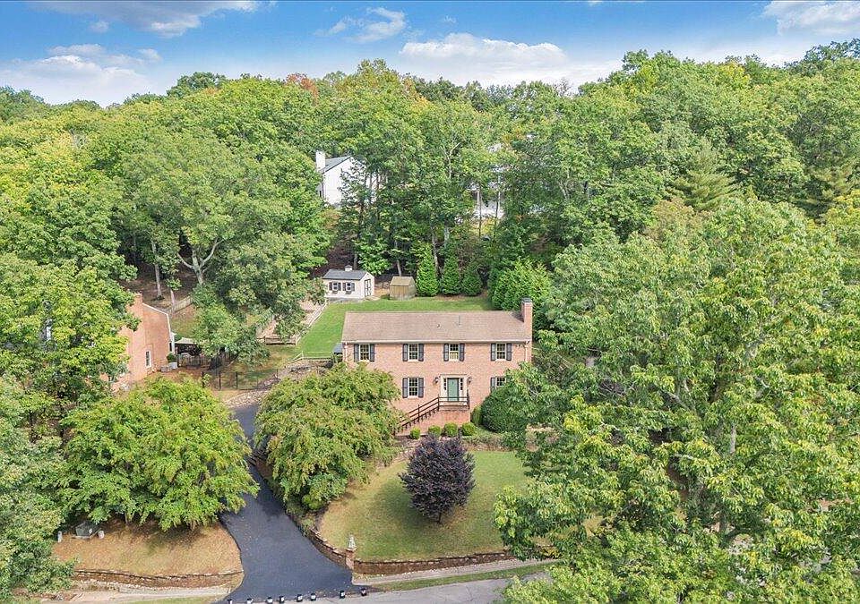 This classic brick colonial in the heart of Hunting Hills combines timeless charm with modern updates. Offering 5 bedrooms, 2 full baths, and 2 half baths. The renovated kitchen is a true centerpiece, with new stainless appliances, Granite counters, three ovens, and a stylish tile backsplash. New granite surfaces continue throughout the home, including the updated bathrooms. The primary suite stands out with its own fireplace, spacious walk-in closet, and dual vanity bathroom. The finished basement adds even more living space with a 3rd fireplace, half bath, and access to the oversized 2-car garage. Outdoor living is exceptional: a screened porch with ceiling fans overlooks the fenced backyard with lush, manicured grass, while extensive landscaping upgrades include new retaining walls, hardscape, a firepit, and a full irrigation system. Other exterior highlights include a large storage shed/workshop with electricity, windows, and cupola, plus a greenhouse!