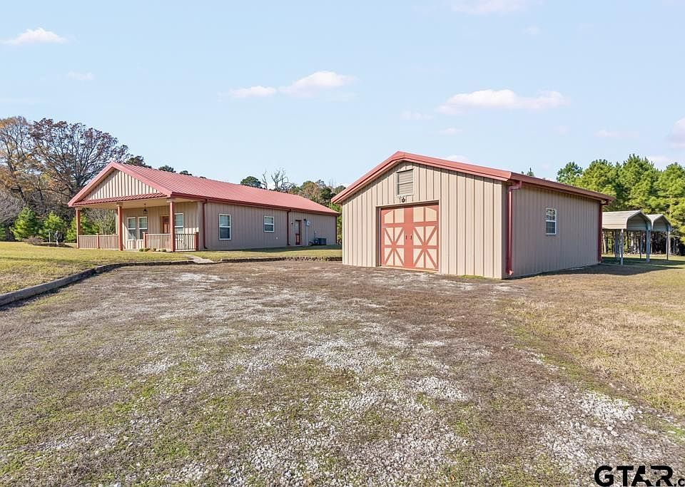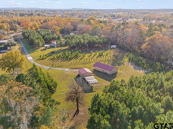 Discover the perfect blend of comfort and country charm with this beautifully maintained 6.191-acre property, featuring a cozy 2-bedroom, 2-bath barndominium. Conveniently located along State Hwy 154 between Gilmer and Diana, this secluded property offers the peace and tranquility of rural living with convenient access to town. Located just 7 minutes form Gilmer and only 20 minutes from Longview, enjoy the amenities of city living without the traffic and noise. This home boasts a vaulted ceiling in the living area which opens to the kitchen, complete with a breakfast bar and plenty of counter space and cabinets for storage. The inviting kitchen space includes a pantry and electric appliances. Enjoy a traditional formal dining area for family dinners and game night. The home features tile floors, central air and heat and an indoor laundry room for added convenience. Step out onto the welcoming front porch and take in the breathtaking sunsets, or enjoy the sounds of songbirds in the trees surrounding your home with this secluded property set back from the main road. Additional amenities include a 2-car garage & shop with an overhead door. Cultivate your hobbies and enjoy the fresh air! Offering quiet country living with easy access to town, this property is a must-see!