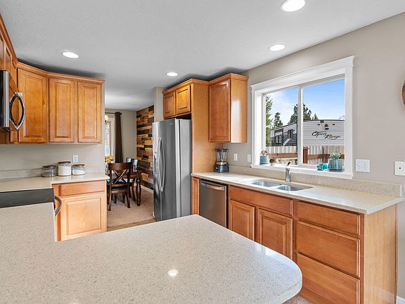 This attractive two-level home offers the perfect gateway to all the recreational activities that La Pine has to offer. Situated on a spacious, nearly 7,000 sq ft fully landscaped corner lot, the property features a dedicated RV parking area, perfect for storing recreational vehicles. Nestled right next to La Pine's Finley Butte Park, you'll have nature and recreation at your doorstep. The home itself boasts incredible curb appeal, a highly functional open floor plan, and fresh interior paint, making it an irresistible option for anyone seeking comfort, style, and convenience.